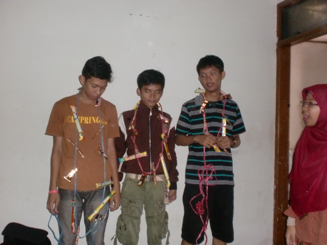 ga juga selesai di situ.. masih ada sesuatu dari kang Makki.. apa? m.. materi soal banyak pokoknya. ada juga games seru.. sampe sampe teh Diba dibilang "debt collector" gara gara bisa nyebutin hampir seluruh nama lengkap + alamat + nomer sepatu + makanan kesukaan + citacita anggota kelompoknya saat itu dengan cepat dan ga terlalu terbata bata -_- ya.. nasib kali ya. setelah selesai dengerin materi dari kang Makki kita mulai persiapan buat balik lagi ke bandung. semuanya beres beres barang masing masing dan beresin rumahnya juga biar bersih dan barang barangnya rapih kaya semula. setelah bubar jalan dari materi materi, kang Eja dan teh Intan pulang duluan, sedangkan teh Kei dianter kang Makki kedepan. sisanya--- ada yang lanjutin tidur subuh.. ada yang main poker.. ada yang nyetel lagu ga karuan.. dan ada juga yang dengan rajinnya terus beberes :-----) sampai akhirnya kang Viki dan kang Makki pergi nyari angkot buat di sewa. dan.. pulaaaaaaaaaaaaaaaang.